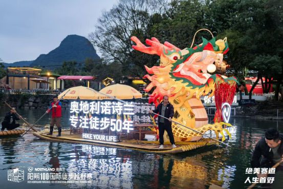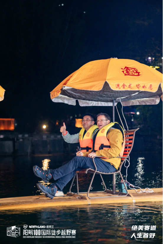 11月8日晚,遇龙河上千米金龙游动。由75张竹筏串联的“金龙巡游”,让光影与山水交织,成为一场独属于东方的户外盛宴。奥地利驻华大使馆公使吴浩然、奥地利驻华大使馆商务参赞 Mr. Franz Röß,奥地利旅游局负责人贾珊与NORTHLAND诺诗兰选手们,共同登上竹筏畅游遇龙河,共庆赛事并对赛事组织与品牌理念给予高度认可。
