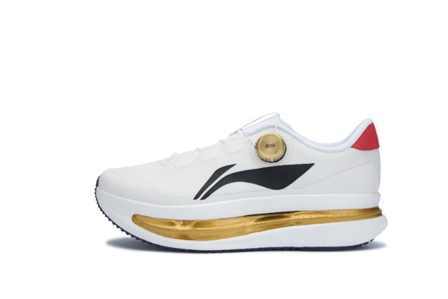 中国体育代表团室内领奖鞋赤兔9 ULTRA SE在动员大会上首次亮相。该鞋款基于李宁经典跑鞋IP“赤兔”打造,寄托了奋勇向前、常胜不止的寓意;鞋面适配冬季应季性穿着需求,采用密实梭织面料,提供高韧性保护,同时满足运动员高强度运动后所需的足部稳定包裹;中底采用了独创的三层“䨻”结构:上层采用全掌超䨻科技轻弹澎湃,中层采用全新的超䨻胶囊疾速响应,下层使用全掌䨻科技稳定承托,并结合翼型玻纤承托片增强韧性,实现轻量、高回弹与稳定支撑的平衡;赤兔9 ULTRA SE的快速系带系统则采用了冠军金色旋钮,整体带来更轻、更弹、更舒适稳定的穿着体验。