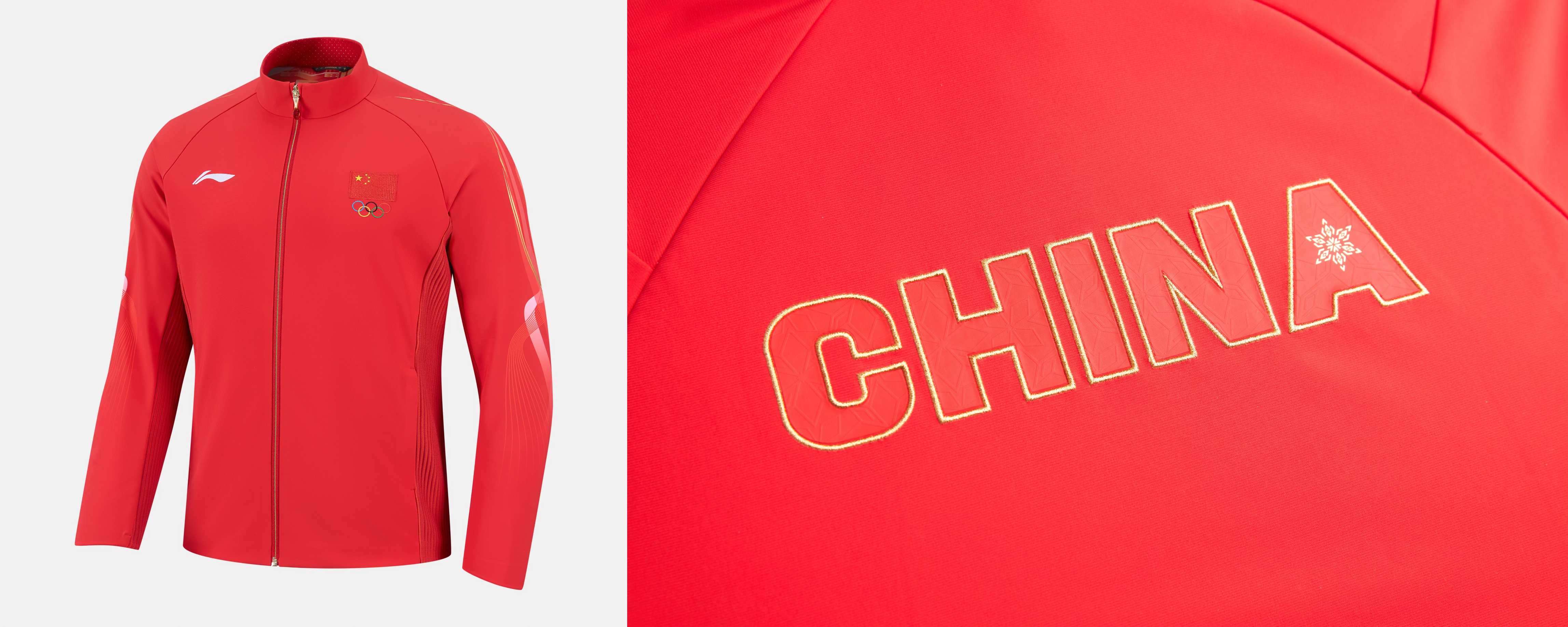 作为中国奥委会官方合作伙伴,李宁品牌以专业运动装备全方位支持、保障中国运动健儿的米兰征程。在动员大会上,运动员身着李宁品牌打造的室内领奖服亮相,以“中国红”为主色调,主身与侧幅分别采用弹力经编面料及高弹肌理面料,使得整体挺阔舒适,展现运动员在领奖时刻的庄严与荣耀;领奖服拉头细节处巧妙采用中国传统吉祥寓意纹样“双胜纹”,该纹样由两个菱形交叠穿插而成,蕴含着胜利、祥瑞、同心共赢等美好寓意,并在此基础上衍生出“双胜雪花纹”,运用于后幅“CHINA”字母纹饰;袖肘处层叠向上的线条设计,灵感来源于冰刀划过赛道的轨迹,将冬季冰雪运动的动态美感融入设计之中,既勾勒出一往无前的速度之美,更彰显着运动员驰骋赛场的拼搏精神。