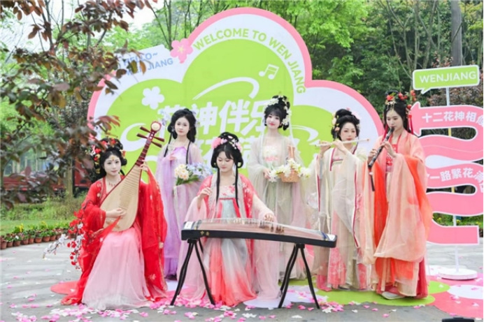 赛道上,由真人扮演的十二“花神”,以传统服饰与古典礼仪鼓励跑者;赛道沿线,啦啦队以热情的呐喊与铿锵的鼓点为跑者加油助威;补给点上,共富咖啡、蓝莓等本地食品的贴心安排,让跑者在奔跑中品味温江的特色风味。